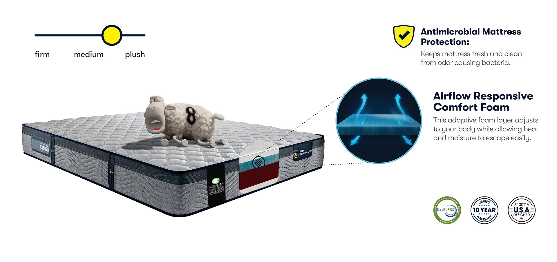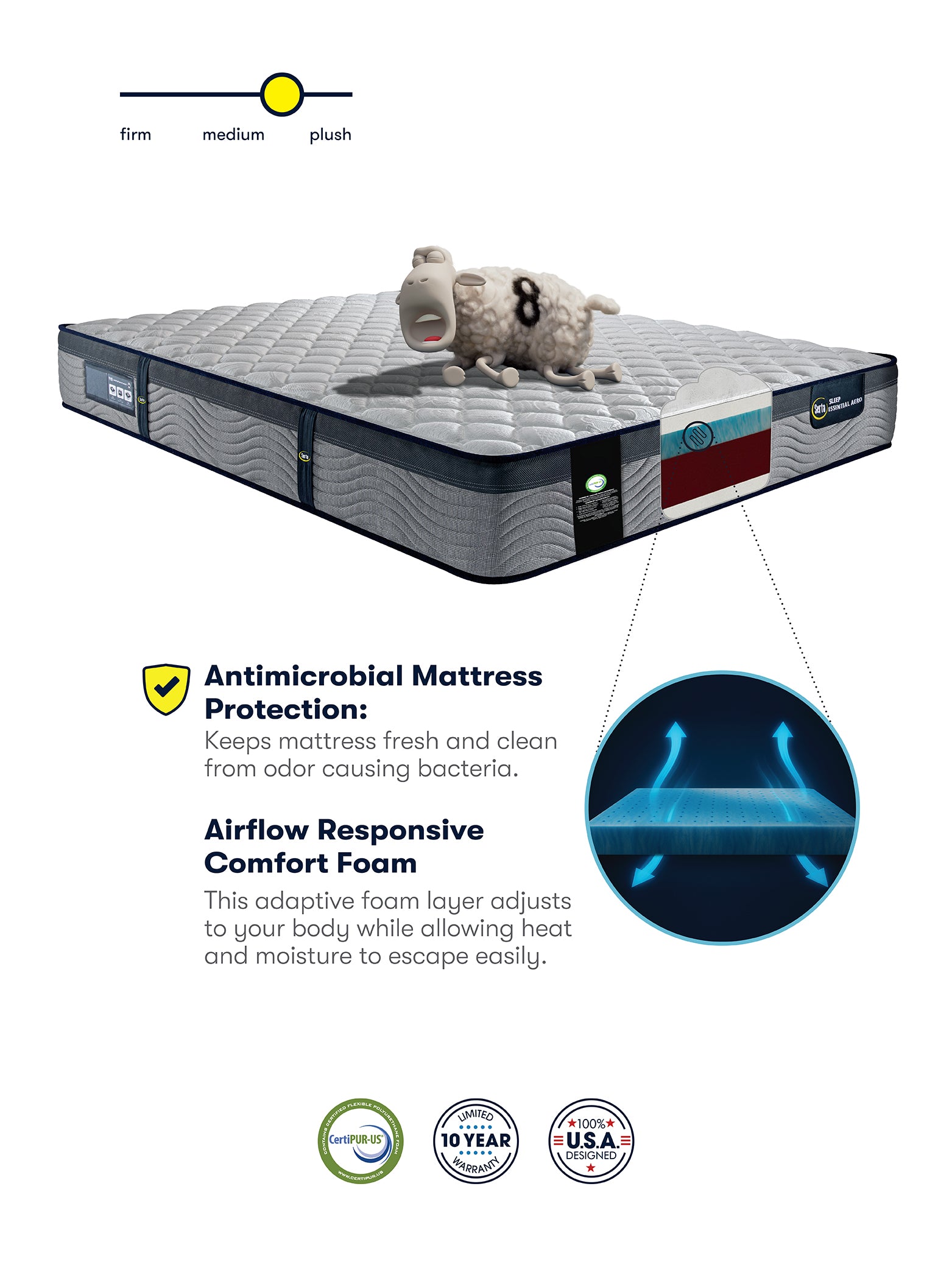 Premium super-resilient polyurethane foam with a softer feel provides pressure relief and helps reduce tossing and turning.